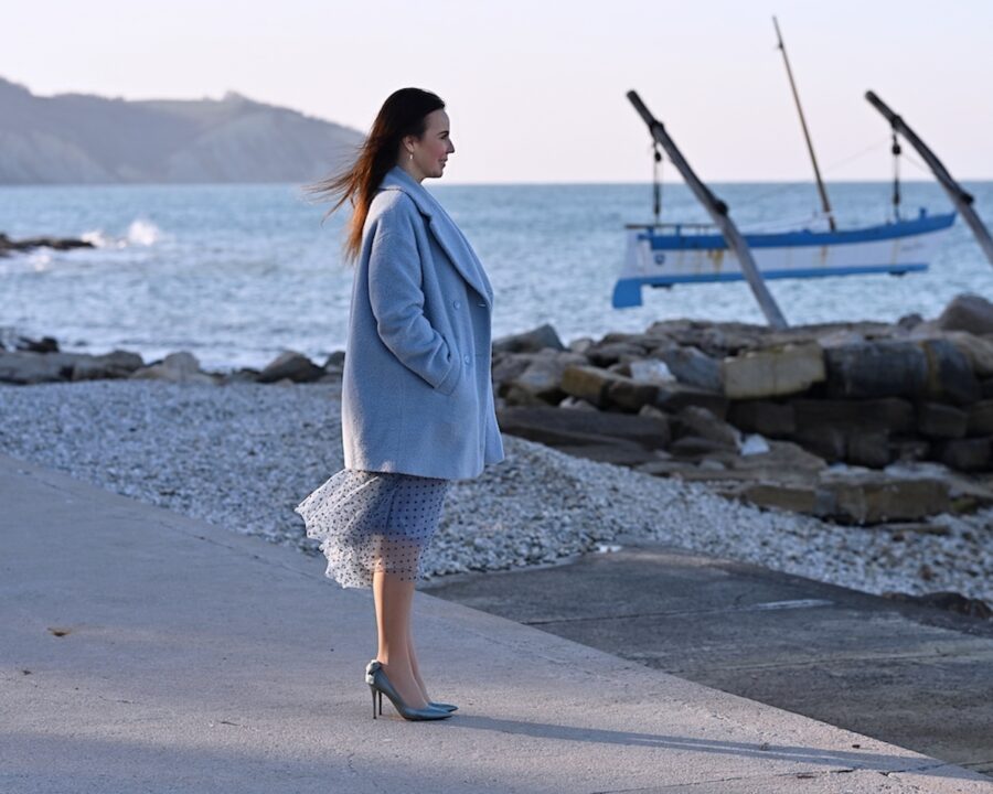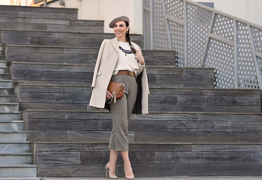 Lo stile del giorno è un inno all’eleganza senza tempo e alla femminilità più delicata. Indosso una gonna in bouclé, raffinata e strutturata, ma allo stesso tempo morbida e confortevole, abbinata a una blusa in pizzo che dona leggerezza e un tocco romantico...