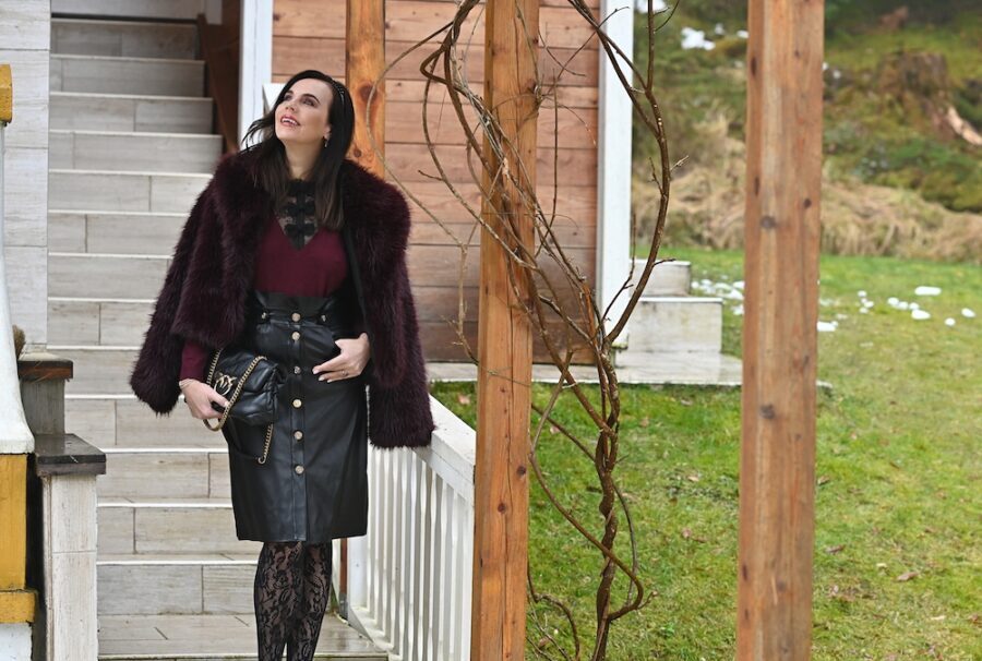 Oggi indosso una combinazione di bordeaux e nero, un abbinamento che trovo sempre elegante e leggermente sofisticato. Ho scelto una gonna midi in pelle nera, con molto carattere, abbinata a un top in pizzo nero che aggiunge un tocco di femminilità e delicatezza. Sopra...