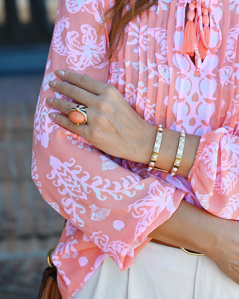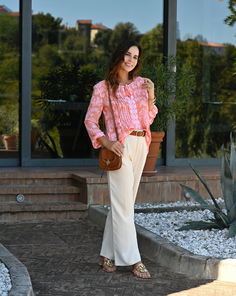 Il mio stile é il seguente: camicia Lilly Pulitzer, Pantaloni Chic Wish, cintura JCrew, sandali Rachel Zoe, borsetta Chloé.